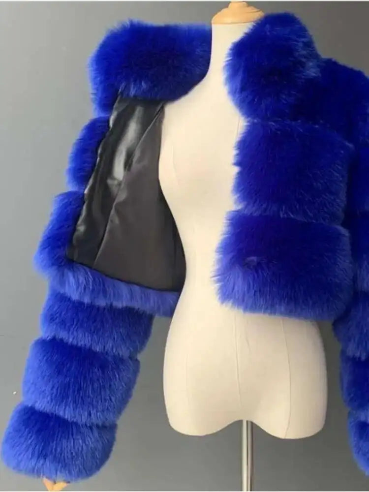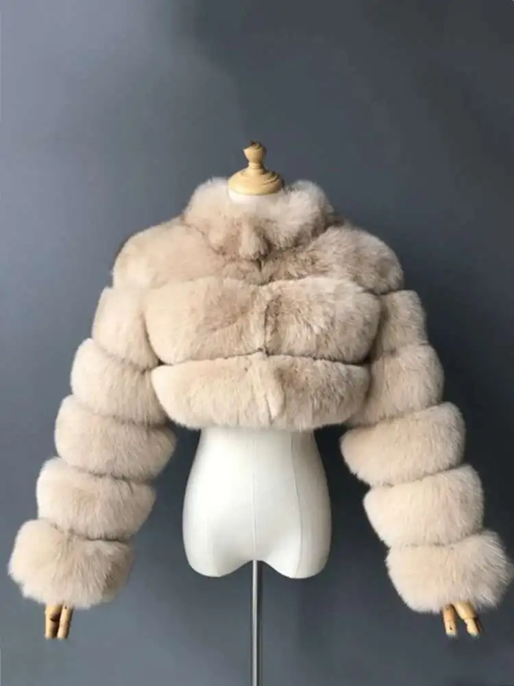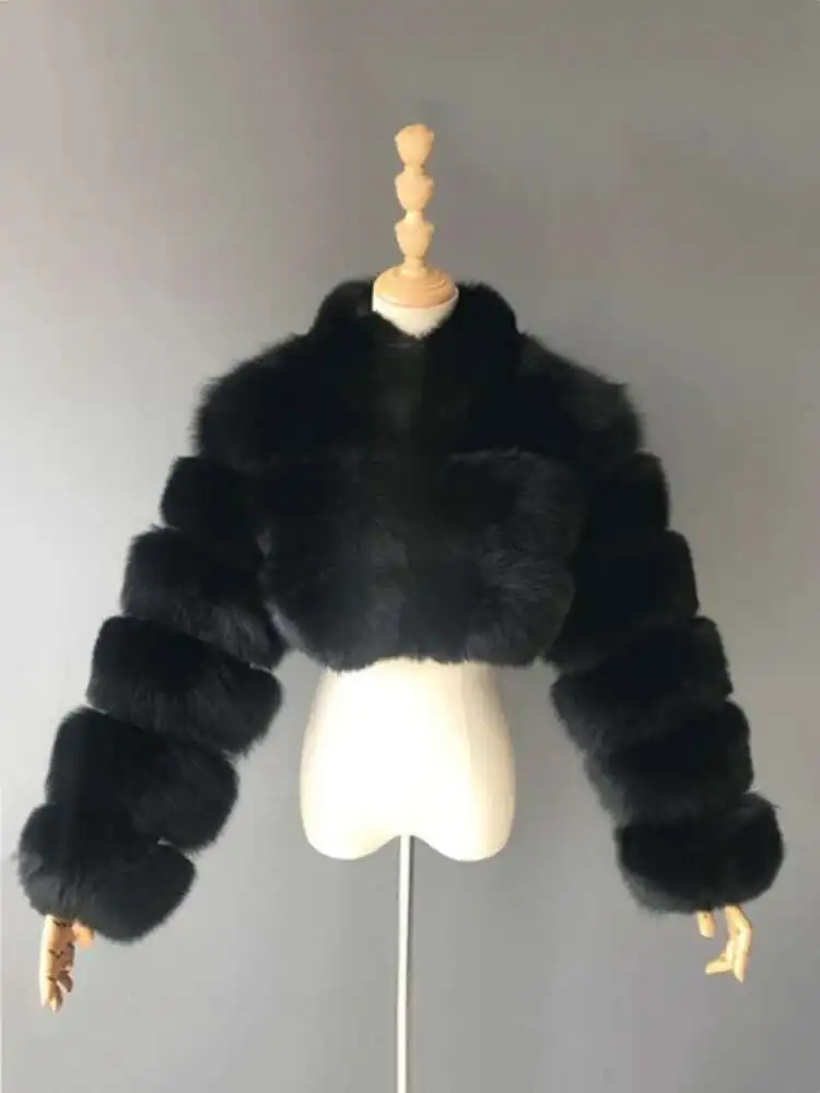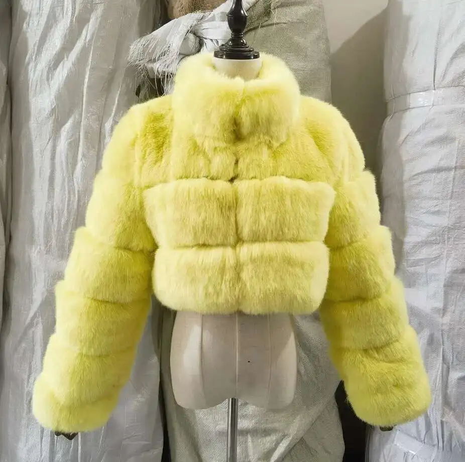 DEAT Fashion Women's Faux Fur Coats Neck Long Sleeve Zipper Short Solid Color Thick Warm Jackets Winter 2024 New 7AB6434