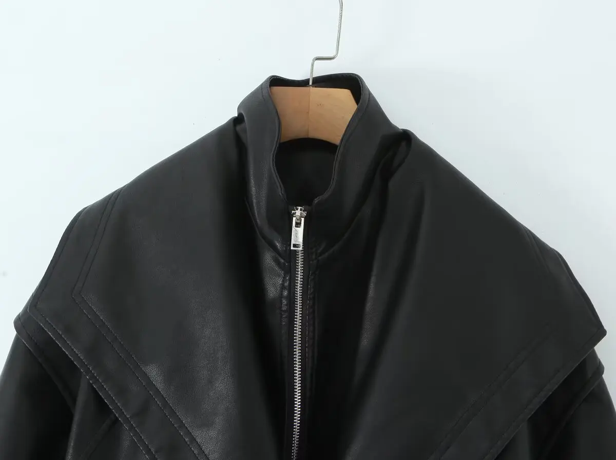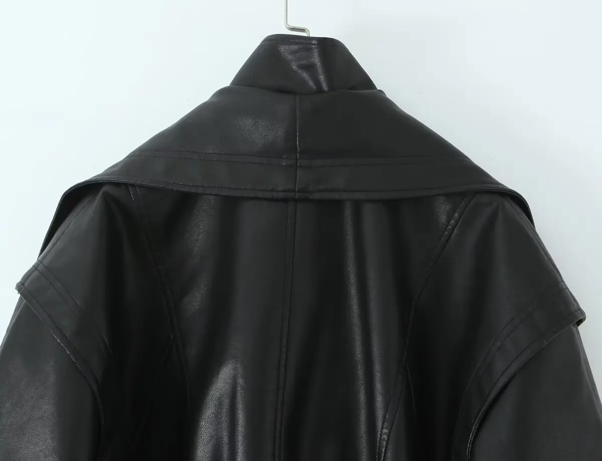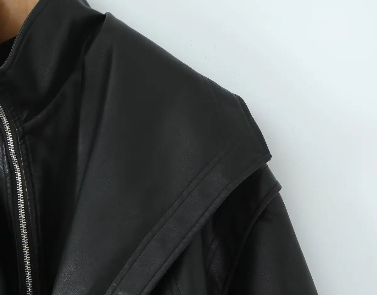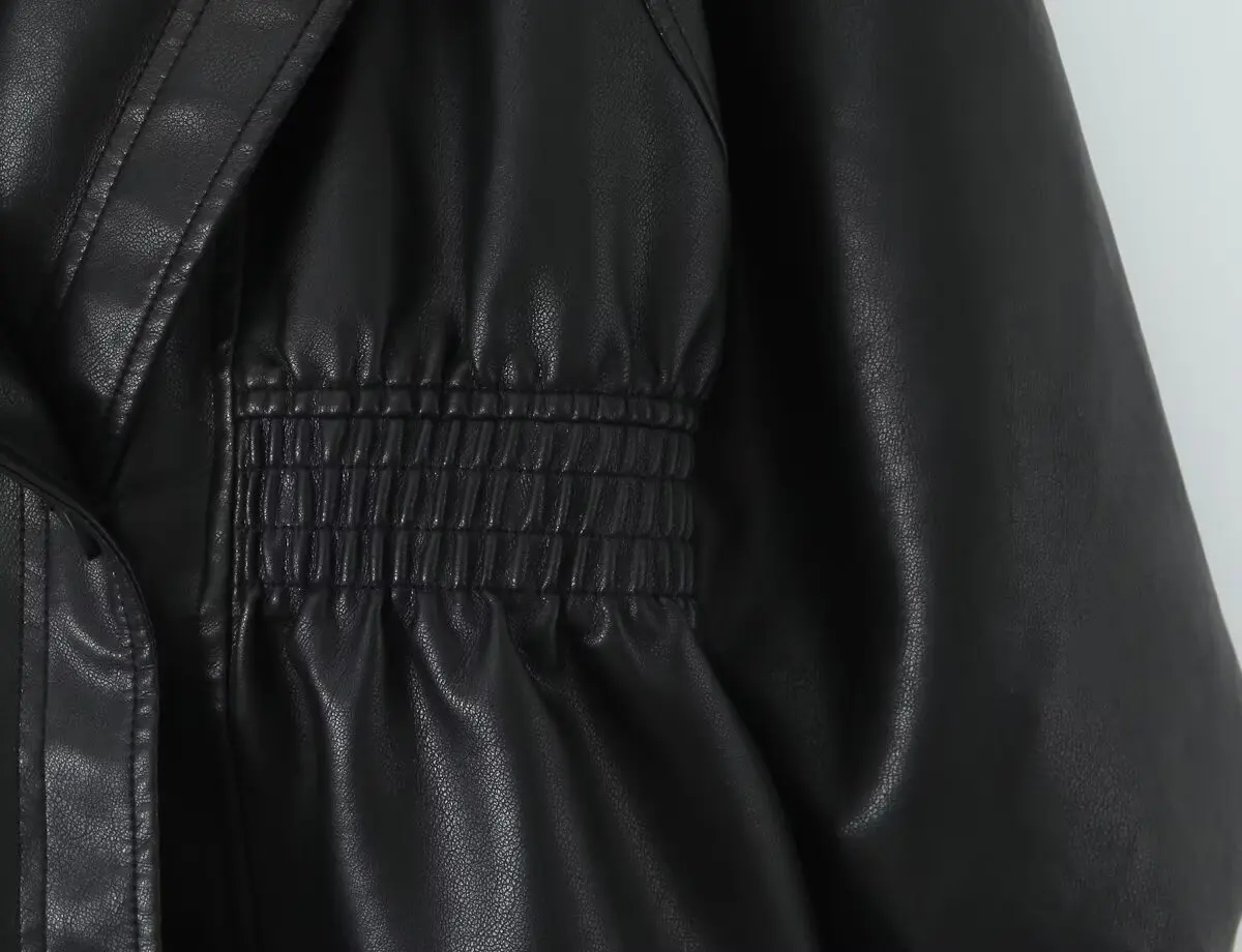 Women's Fashionable New Autumn Jacket Retro Lapel Pu Leather Zipper Coat Versatile Stylish Casual Cool Outerwear