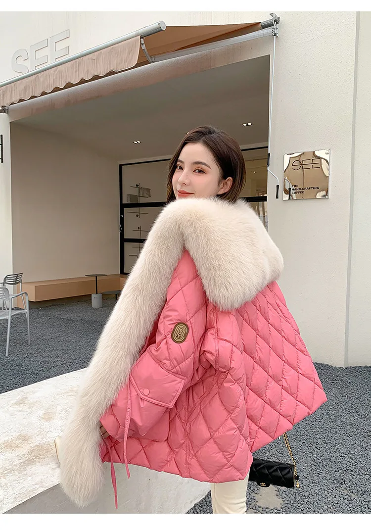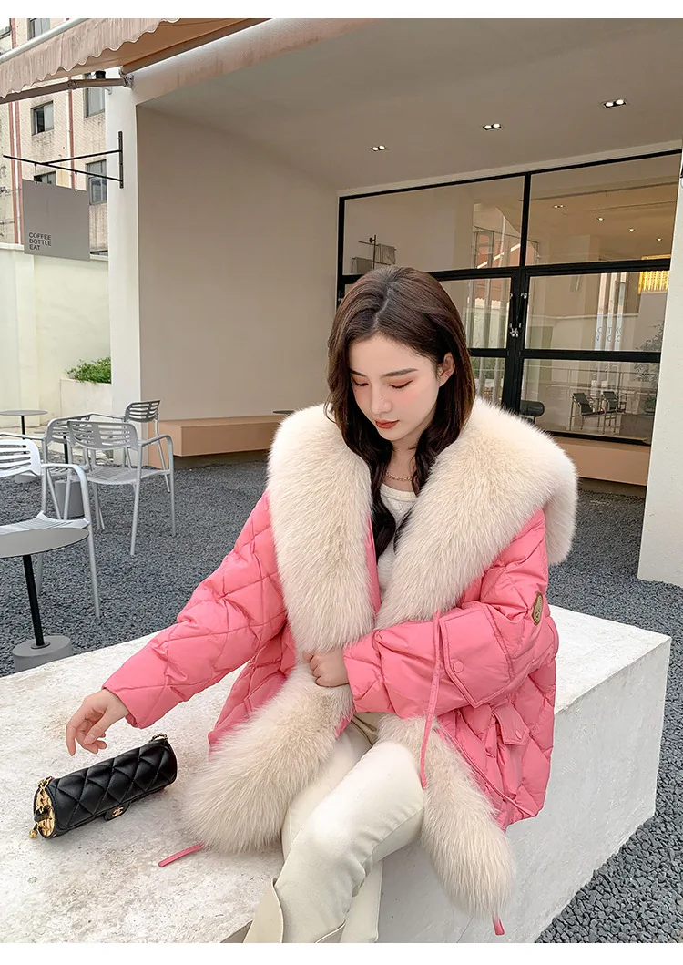 winter warm coat luxury fur collar: winter Korean fashion warm outer wears
