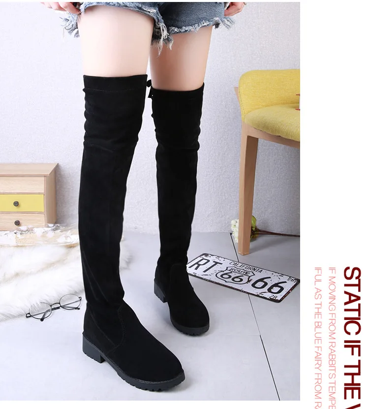 Women's winter new knee-high boots Outdoor suede Anti slip shoe round toe casual elastic boot Comfortable fashion shoes
